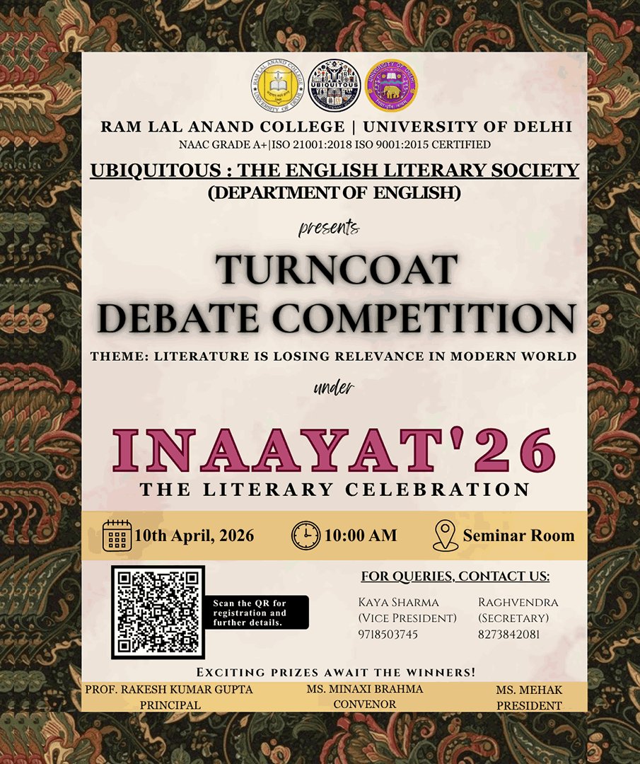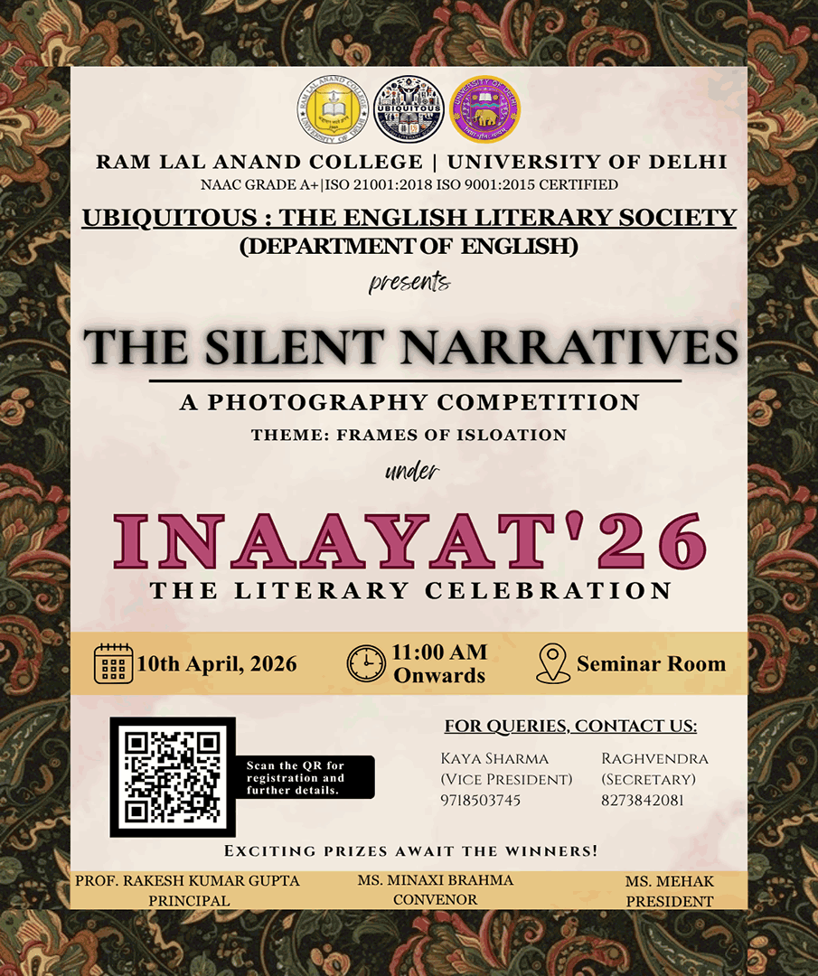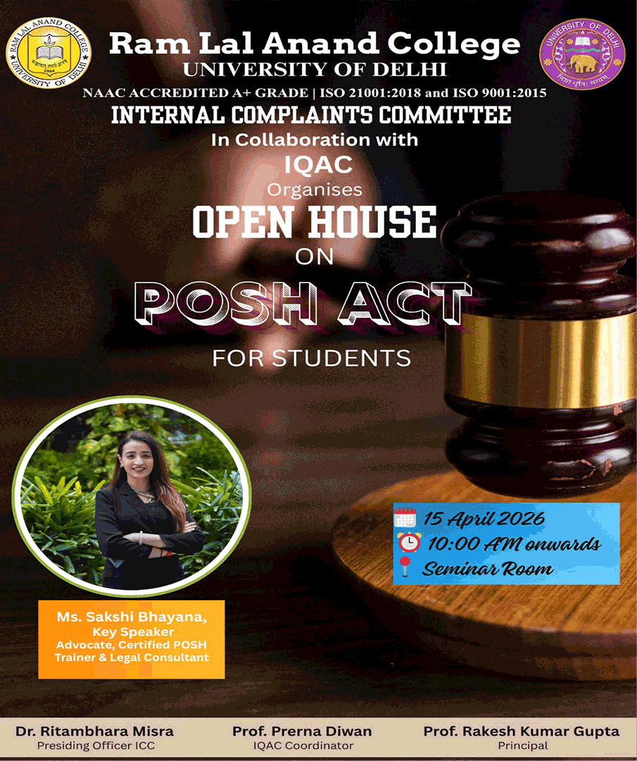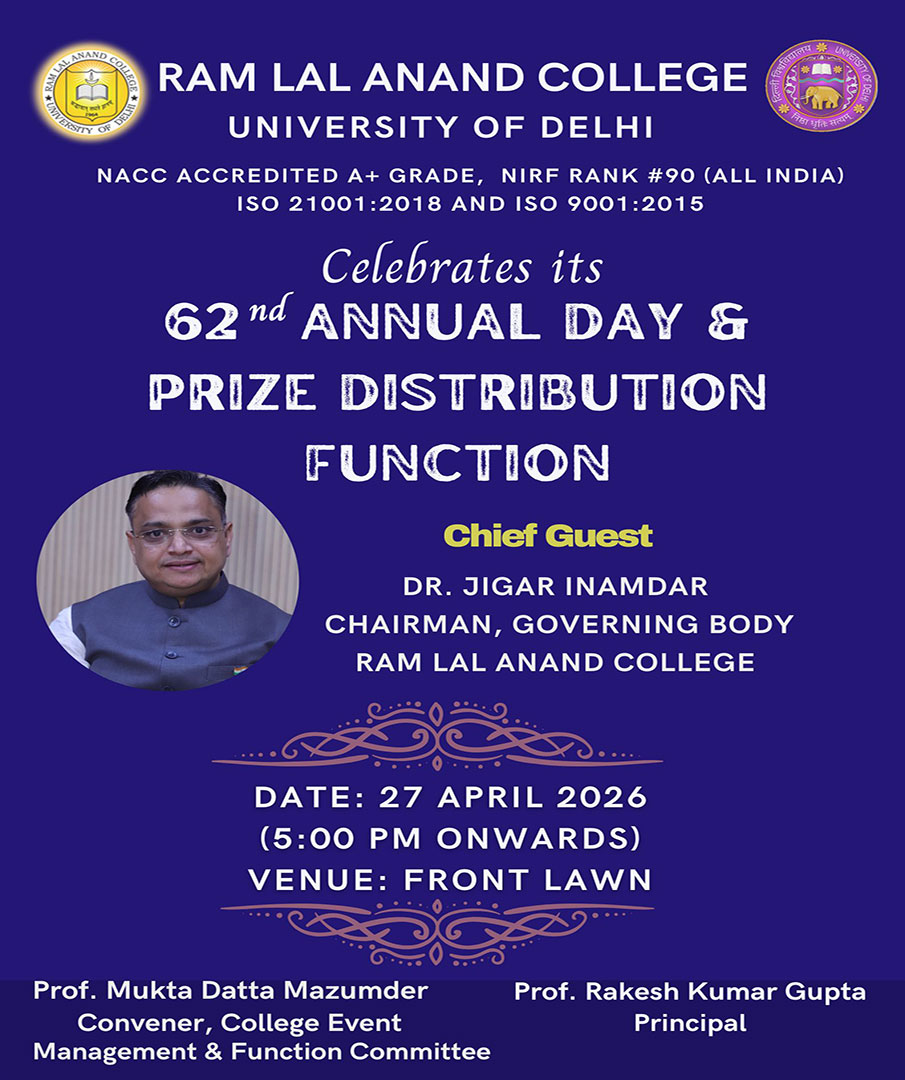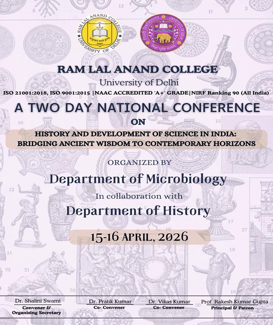 NewList of selected students for Book Bank facility 2025-26 NewThe Department of Commerce, Ram Lal Anand College, University of Delhi, New Delhi, is delighted to announce the "1st International Conference on Sustainability, Resilience and Inclusive Development (ICSRD- 2026)"